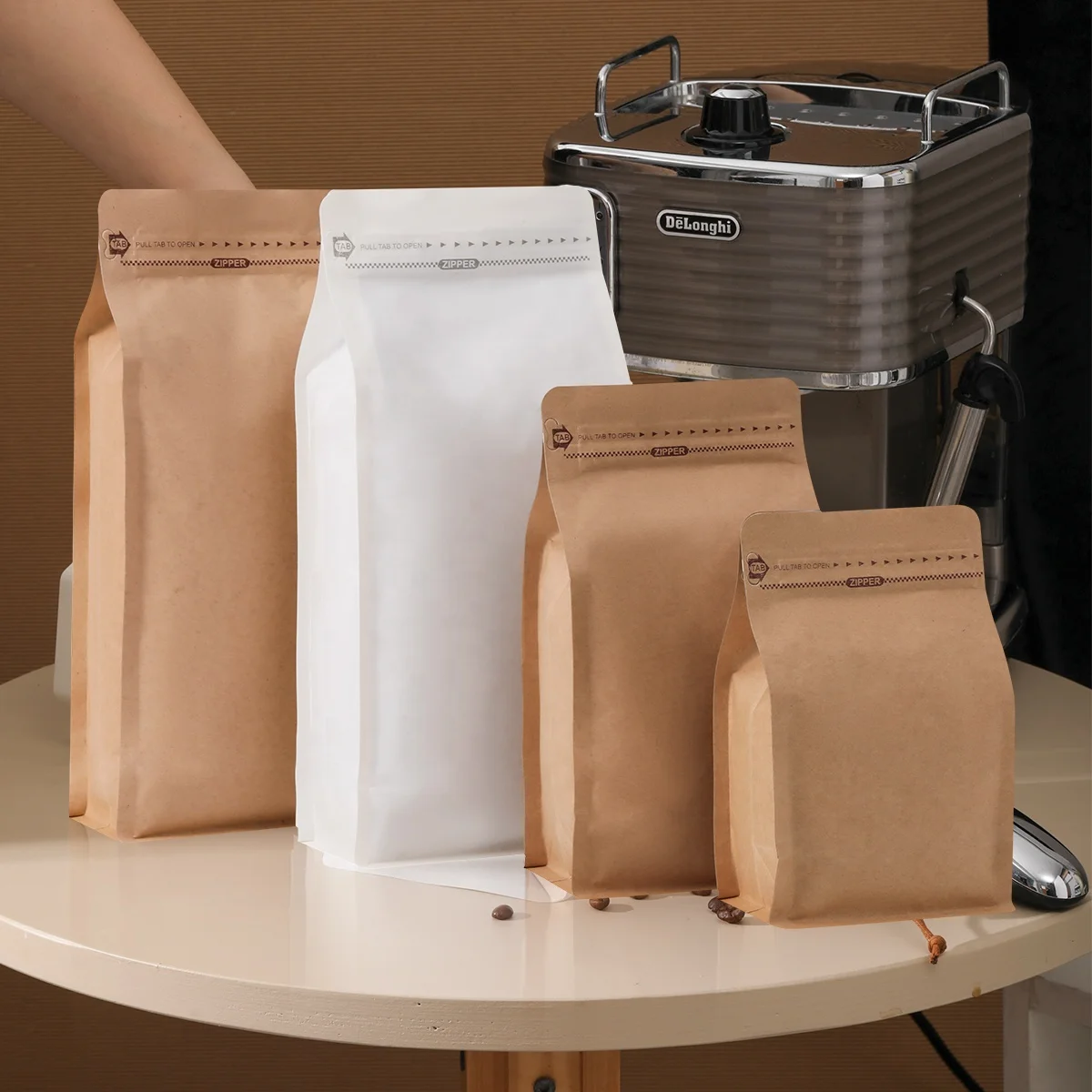 The Gravure Printed Kraft Paper Resealable Coffee Bag represents a sophisticated packaging solution engineered for premium coffee preservation and brand presentation across multiple capacity requirements. This innovative coffee packaging system combines the natural aesthetic appeal of kraft paper substrates with advanced barrier protection technologies, featuring a meticulously designed square bottom construction that ensures optimal stability during storage, transportation, and retail display. The gravure printing process employed in manufacturing these coffee bags delivers exceptional print quality with vibrant color reproduction and precise detail registration, enabling brands to showcase their identity with professional-grade visual impact that resonates with discerning consumers worldwide. The resealable mechanism integrated into each bag provides convenient functionality for end users while maintaining product freshness through multiple opening cycles, addressing the growing market demand for user-friendly packaging that extends product shelf life. The white PE plastic inner layer serves as a crucial moisture barrier component, working synergistically with the aluminum foil lamination to create a comprehensive protection system against oxygen, moisture, light, and aromatic compound migration that could compromise coffee quality over time. This multi-layer construction methodology reflects contemporary packaging engineering principles where each material component contributes specific protective properties while maintaining overall package integrity and performance reliability. The square bottom design architecture facilitates efficient filling operations during production while optimizing storage space utilization throughout the supply chain, from manufacturing facilities to retail environments. Custom packaging solutions of this caliber demonstrate how traditional kraft paper aesthetics can be enhanced through modern lamination technologies to meet stringent food safety requirements without sacrificing visual appeal or functional performance. The gravure printing capabilities enable precise reproduction of complex graphics, typography, and branding elements that help coffee producers differentiate their products in competitive marketplace environments. Premium coffee packaging applications benefit significantly from the moisture-proof characteristics provided by the aluminum foil barrier layer, which prevents external humidity from affecting the delicate flavor profiles and aromatic qualities that define specialty coffee products. The PE plastic component ensures heat-sealability for secure closure formation while maintaining flexibility necessary for efficient packaging line operations and consumer handling convenience. Professional coffee roasters and packaging specialists recognize the importance of selecting appropriate barrier materials that complement their product preservation strategies while supporting brand positioning objectives through sophisticated visual presentation. The kraft paper exterior surface provides an excellent substrate for high-quality printing applications while conveying natural, sustainable packaging aesthetics that align with contemporary consumer preferences for environmentally conscious product presentation. Manufacturing experience in producing complex laminated structures ensures consistent quality delivery across production runs, maintaining the precise material combinations and sealing parameters essential for reliable performance in demanding coffee packaging applications. The resealable feature addresses practical consumer needs for portion control and extended freshness maintenance, particularly important for larger capacity formats where products may be consumed over extended periods. Square bottom coffee bags offer superior shelf presence compared to traditional flat-bottom alternatives, creating more stable product presentation that enhances retail appeal and facilitates efficient inventory management practices. The aluminum foil integration provides exceptional barrier properties against light transmission, preventing photodegradation of sensitive coffee compounds while maintaining the distinctive metallic appearance elements that communicate premium quality positioning to target consumers. Gravure printing technology enables reproduction of complex color gradients, fine text elements, and detailed imagery that supports comprehensive brand storytelling through package graphics, allowing coffee brands to communicate their unique value propositions effectively. The moisture-proof characteristics of this packaging system extend beyond basic humidity protection to include resistance against condensation formation and vapor transmission that could compromise product quality during temperature fluctuation exposure. Custom packaging solutions incorporating these advanced material combinations demonstrate how traditional packaging aesthetics can be enhanced through modern barrier technology integration without compromising visual appeal or sustainable material preferences. The white PE plastic layer provides neutral background properties that prevent color contamination while ensuring optimal heat-sealing performance across various production line configurations and operating parameters. Professional packaging specifications for coffee applications require careful consideration of material compatibility, barrier performance, and processing characteristics that support efficient production operations while delivering consistent end-user functionality. The kraft paper component contributes renewable material content while providing excellent printability characteristics that support high-quality graphic reproduction essential for effective brand communication in competitive retail environments. Square bottom construction methodology ensures optimal bag stability during filling operations while facilitating efficient shipping container utilization 
